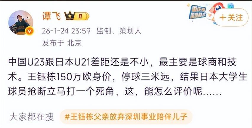 "王钰栋这锅背得冤啊!日本队全场压制,门将李昊都扑了十几次了,咋就盯着他一个停球失误喷?"